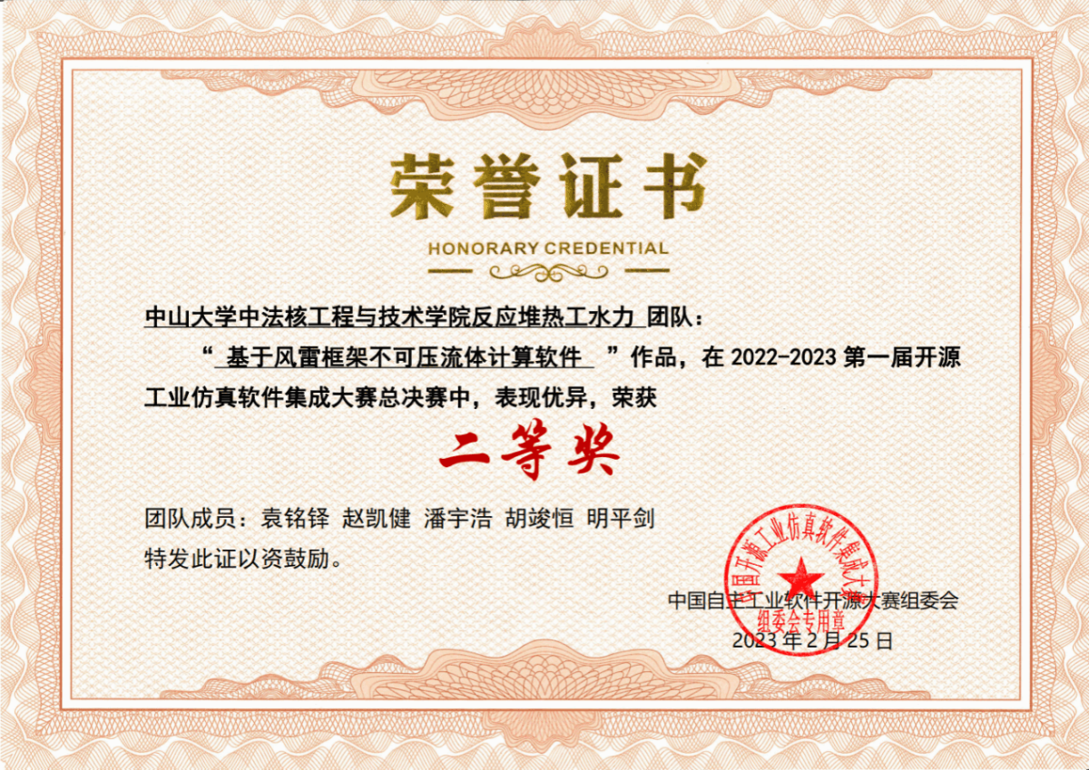 中法核学子在第一届开源工业仿真软件集成大赛中获二等奖