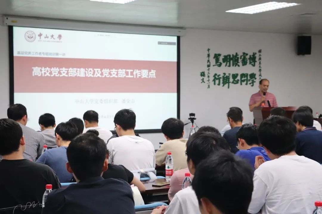 2023年4月13日晚上,珠海校区基层党务工作者第一次专题培训,在教学楼F309会议室举行。本次专题培训由太阳集团tyc86党委承办。党委组织部专职组织员潘金山同志做了题为“高校党支部建设及党支部工作要点”的主题报告。珠海校区各学院和研究中心的党务秘书、各师生党支部的支部委员共150余名基层党务工作者,以线下+线上的形式参加了培训。