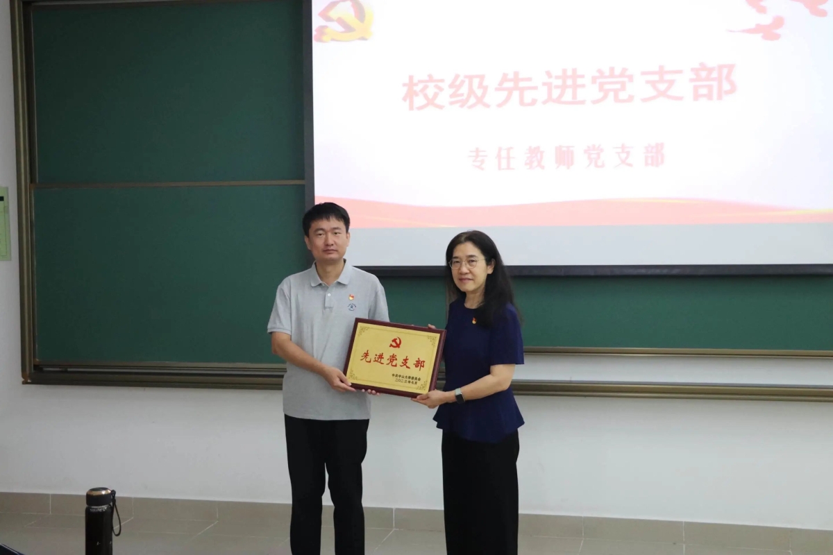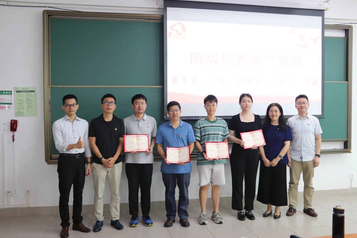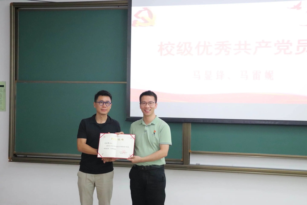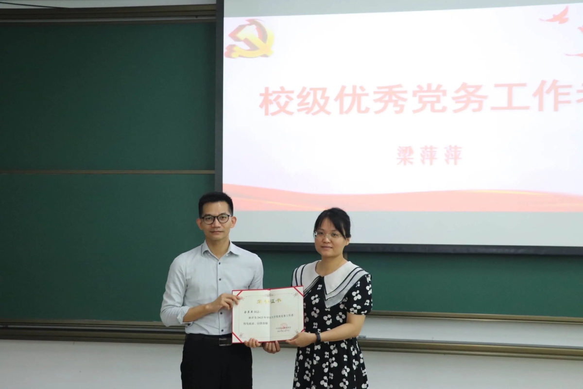 徐瑶书记通报了学院2023年“七一表彰”结果:专任教师党支部获评校级先进党支部,梁萍萍同志获评校级优秀党务工作者,马显锋同志、马雷妮同志获评为校级优秀党员,袁岑溪同志、卢亮同志、陈灿林同志、吴涵玉同志、周越同志获评为院级优秀党员。学院党委委员分别为先进集体和个人颁发证书。