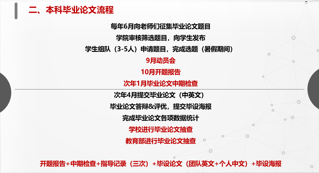 最后贺秀杰副教授进行总结,教育部对本科毕业论文的要求更加严格,更加规范,同学们必须端正工作态度,明确小组分工,积极和导师沟通交流,及时反馈论文进展,按时高质量完成论文。