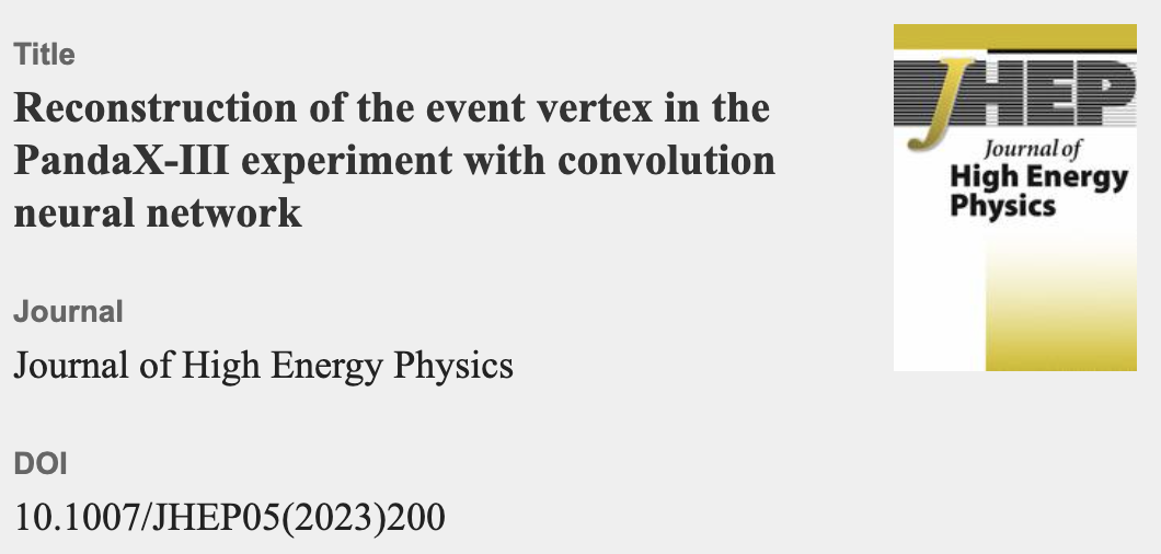 近日,国际权威期刊《Journal of High Energy Physics》发表了我院王为教授团队李涛博士后的最新科研成果(图一)《Reconstruction of the event vertex in the PandaX-III experiment with convolution neural network》。该文章首次提出利用神经网络的方法来表征探测器中带电粒子径迹的扩散特征,解决了一直以来困扰PandaX-III实验的事例顶点缺失问题,能够有效提升实验上寻找无中微子双贝塔衰变的灵敏度。