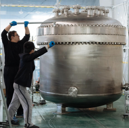 马约拉纳中微子的研究是当前粒子物理领域探索超出标准模型新物理的热点研究方向。无中微子双贝塔衰变是轻子数破坏的稀有核衰变,可以证明中微子的马约拉纳属性,揭示宇宙中正反物质不对称的现象与中微子的质量之谜。作为下一代实验研究的重点方向,PandaX-III(图二)是首个建成的基于百公斤级高压气氙时间投影室技术用于搜寻该稀有核衰变过程的探测器,其可以同时精确地记录粒子在探测器中沉积的能量和径迹,从而用于目标事例信号的识别。PandaX-III由上海交通大学主导,中山大学和中国科学技术大学等国内多家单位以及法国、西班牙、美国等国际科研机构合作开展。李涛博士后负责PandaX-III数据采集系统研发、探测器模拟仿真以及径迹特征分析的工作。