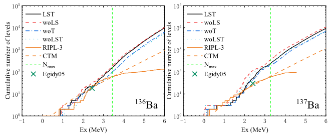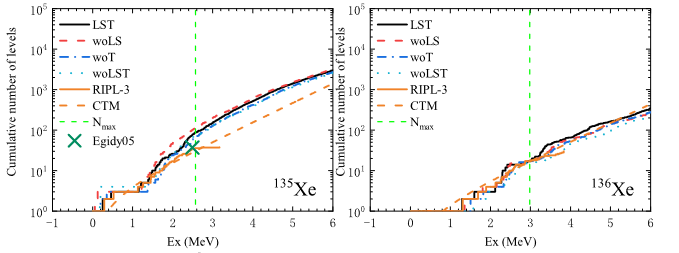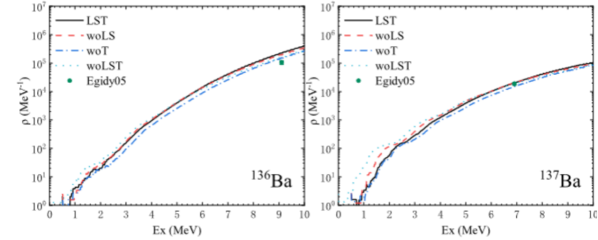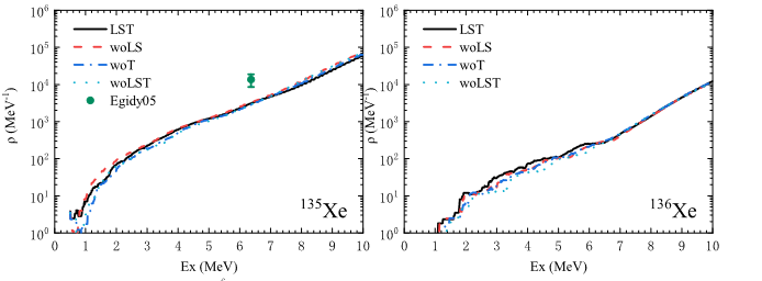 我院核数据科学及应用团队基于核子-核子相互作用,在原子核壳模型的框架下微观地计算了Xe和Ba核素等反应堆重要产物的能级密度。