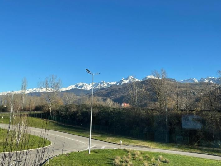 谈谈格勒吧,Grenoble,在法国东南部的奥弗涅-罗讷-阿尔卑斯大区伊泽尔省,在里昂的南边,一座三面环山的小城市,麻雀虽小五脏俱全,有两三家中超,走在路上处处都是风景,抬头即见山,特别是冬天的时候,在宜家的大落地窗看出去,能看到很漂亮的Belledonne山脉。(如下图)