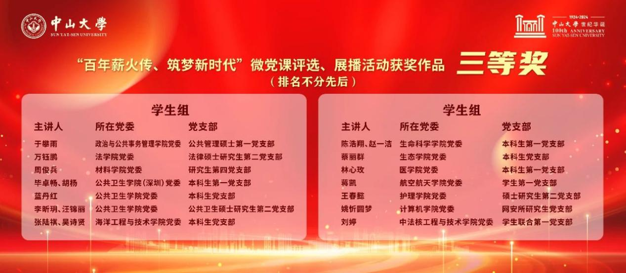 为深入学习贯彻习近平新时代中国特色社会主义思想,全面贯彻落实党的二十大和二十届二中、三中全会精神,深入挖掘中大百年红色基因,充分展示中大百年发展成就,充分发挥基层党组织和党员示范带动作用。中山大学党委以“百年薪火传、筑梦新时代”为主题,开展了微党课评选、展播活动。