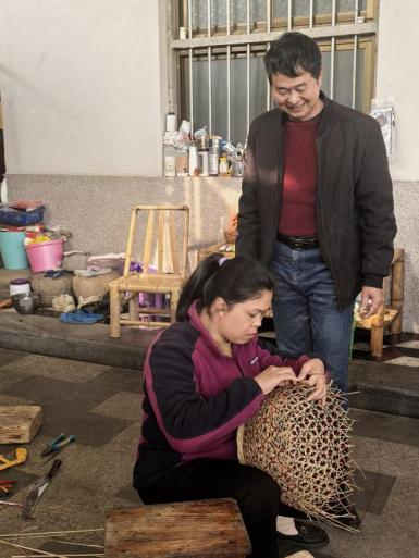 林家父女在制作竹编