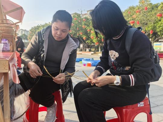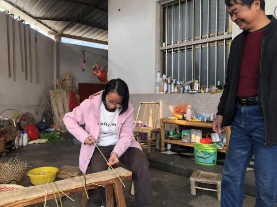 作者向林仁凤、林金花学习竹编技术