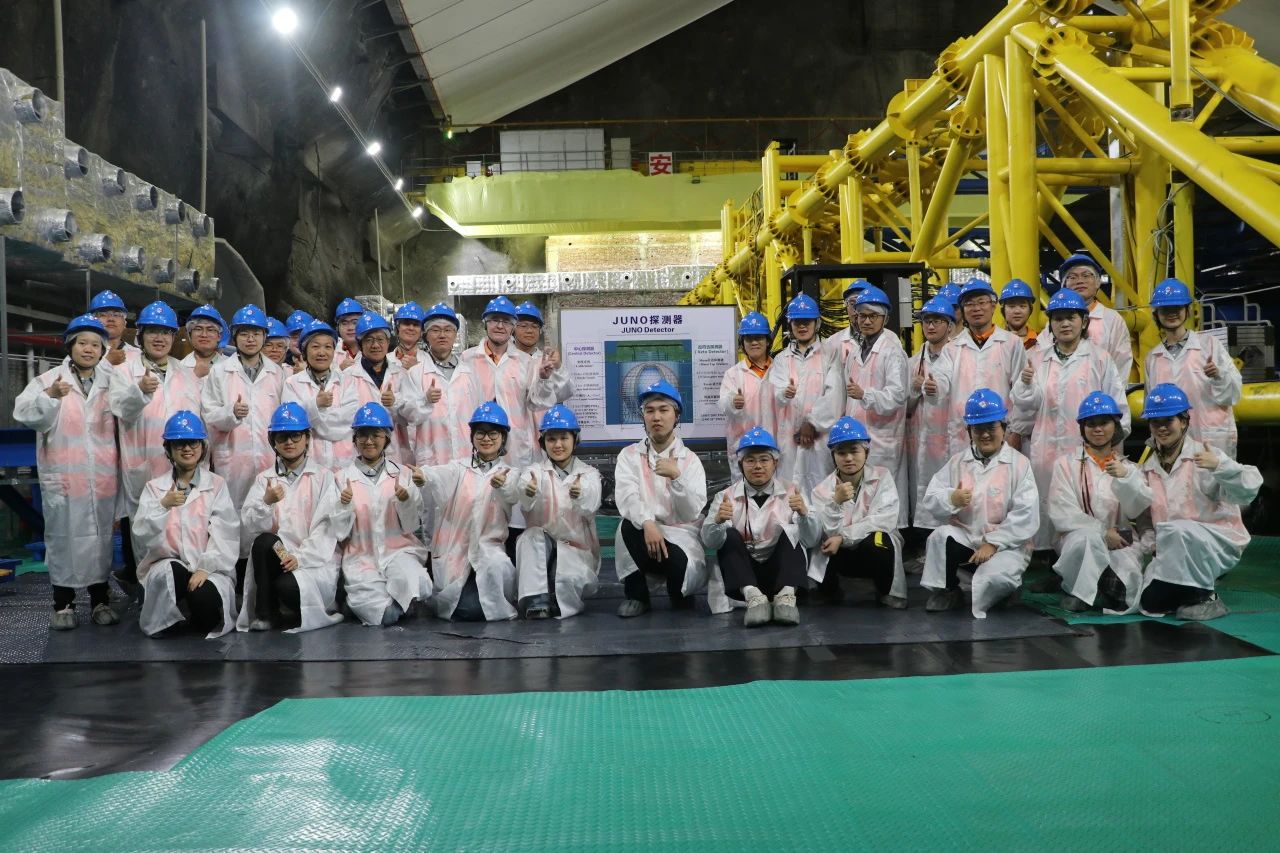 师生首站来到广东江门中微子实验(JUNO)基地,实地探访这一国家重大科技基础设施。在地下700米的实验大厅,项目负责人系统讲解了中微子探测原理、实验室选址依据及装置核心技术。作为全球领先的中微子振荡研究平台,该装置采用2万吨液体闪烁体探测器和世界最高精度定位系统,将为破解宇宙反物质消失之谜提供关键数据支撑。