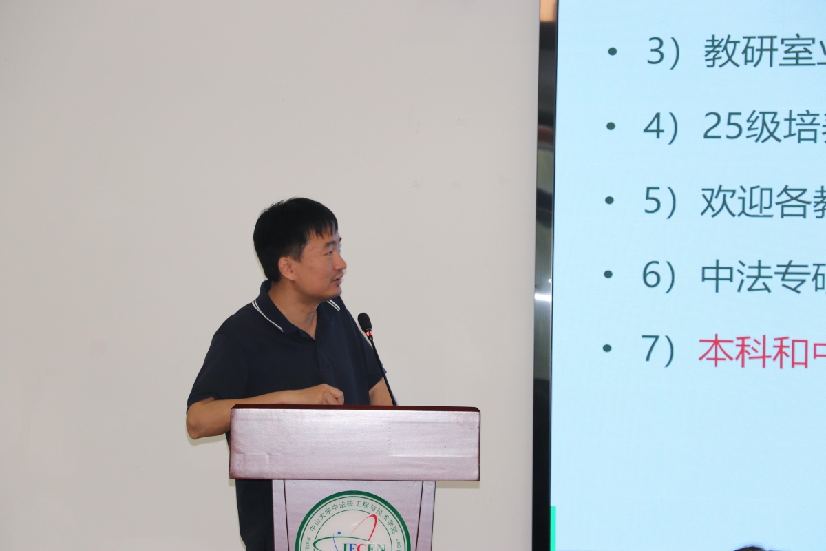 袁岑溪副院长强调了本科与中法专硕人才培养工作的关键要点,一是严格抓好讲学-导学授课体系落实,强化课堂教学与学风建设;二是推进课程评价适配培养目标,完善通识与专业课程多元评价机制;三是明确2025级核心培养方案;四是规范中法专硕校外实习管理与毕业答辩流程。