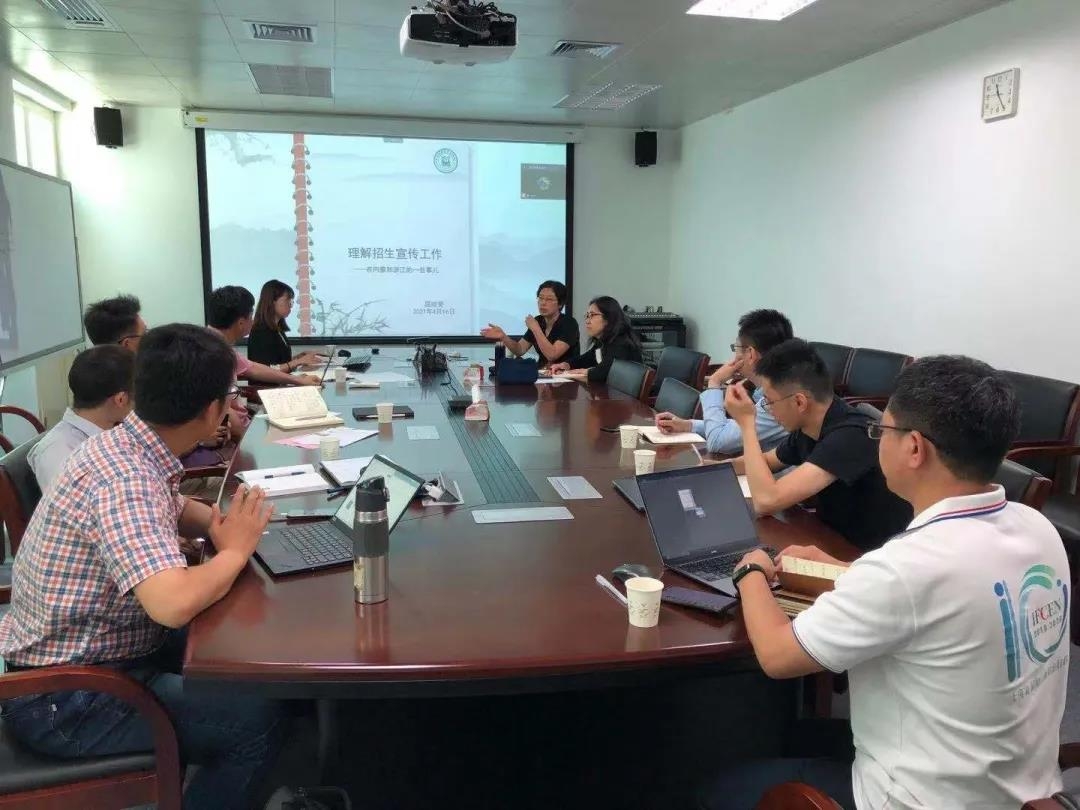 2021年4月22日上午,学院在教学楼F324召开招生宣传工作会议。学院领导班子成员、党政办公室部分人员,以及教研室负责人和学科骨干等分别在线上线下参加了会议。