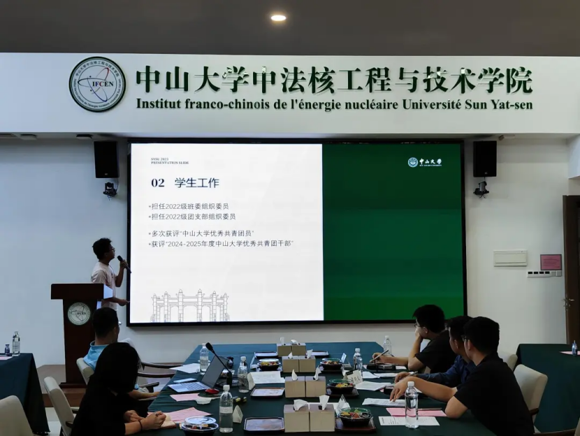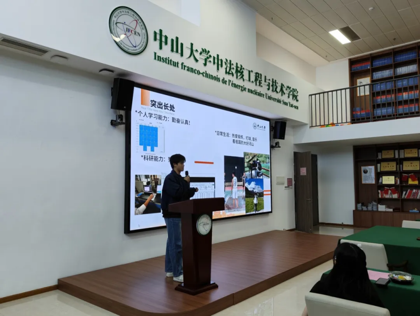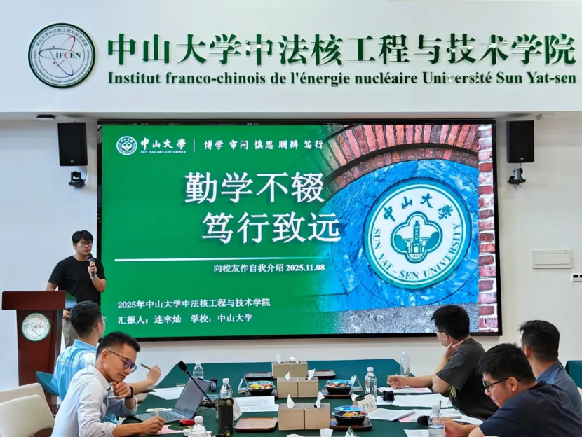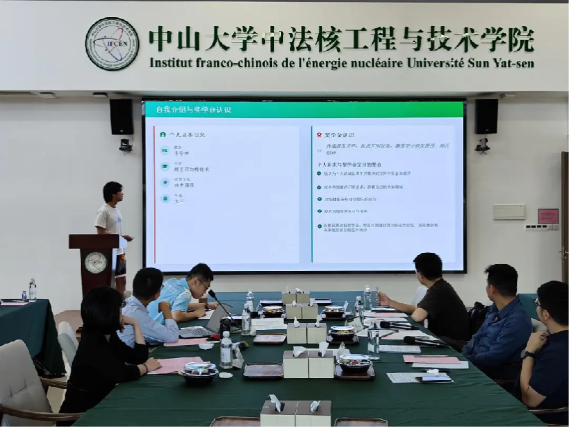 2025年11月8日下午,第六届中法核校友奖学金评选答辩会在瀚林3号C615顺利举行。本次答辩会由校友高杰松、张颂培,以及学院党委副书记刘李云、助理教授覃聃文、博士后林金城担任评委。会议由2023级本科生覃雁主持,各年级推荐出来的12名奖学金候选人参加答辩。