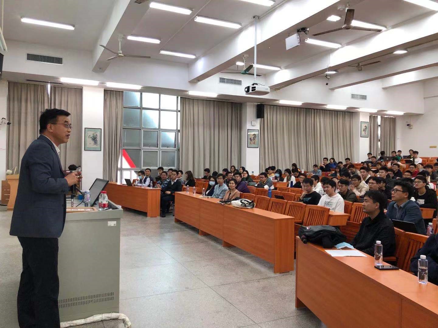 中午13:15-14:15,葛智刚主任在教学楼E201做了题为《核数据研究与应用》的报告,王为院长为他颁发了讲学证书,袁岑溪副教授主持。报告会吸引了近300名师生到场参加。