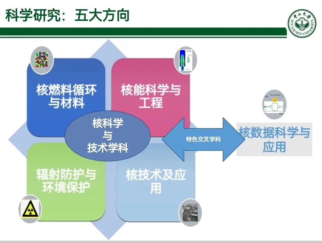 目前,在核科学与技术一级学科下,学院已经建成了五个二级学科方向,包括:核能科学与工程、核燃料循环与材料、核技术及应用、辐射防护与环境保护、核数据科学及应用,以及支撑核能与核技术发展的物理、力学、能源、仪控等方向。