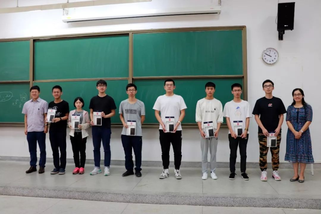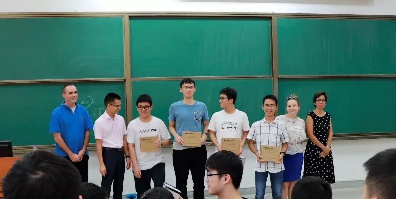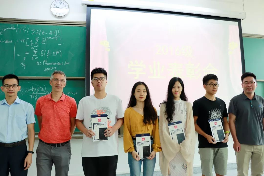 中方院长王彪、党委副书记(主持工作)徐瑶、党委副书记刘李云、院长助理康明亮、工程师阶段短期专家Patrice Petitclair、法语科课组负责人Joanna SITNIK、物理化学课组负责人Océane GEWIRTZ、数学课组负责人Alexander GEWIRTZ在F201课室为2016级胡昊等11名学生颁奖,每位同学获得液晶手写板一块。