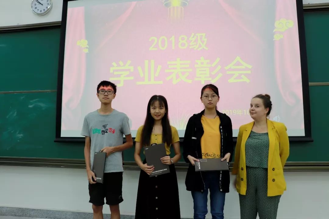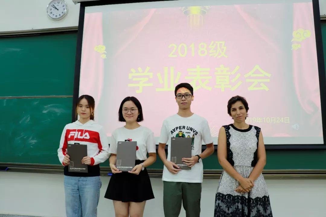 在会上,梁萍萍老师和马雷妮老师分别宣读了在2019年7月学业评价会上获得“祝贺”和“激励”的同学名单,学院领导和教师代表分别为获表彰同学颁发奖品。