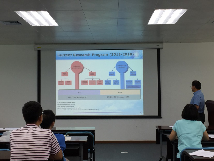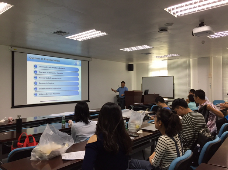 在报告中,姜晶教授首先介绍了核能在加拿大和安大略省能源供应中的重要地位。随后论述了核电厂仪控系统对于维护核电厂安全和运行性能的重要意义,并通过实例阐述仪控系统的设计原理和可靠性增强技术。在此基础上,姜晶教授介绍了其研发团队在反应堆及核电厂先进数据传输技术、智能传感器及非能动安全系统等方面的研究工作,及加拿大核工业界及国际原子能机构 (IAEA) 在仪控系统方面的最新研究进展。此外,姜教授还介绍了加拿大特有的CANDU (CANada Deuterium Uranium) 反应堆的历史渊源。在互动环节,姜晶教授与我院师生就核电厂功率调峰、物理仿真系统、氚排放标准等问题展开了热烈的讨论。