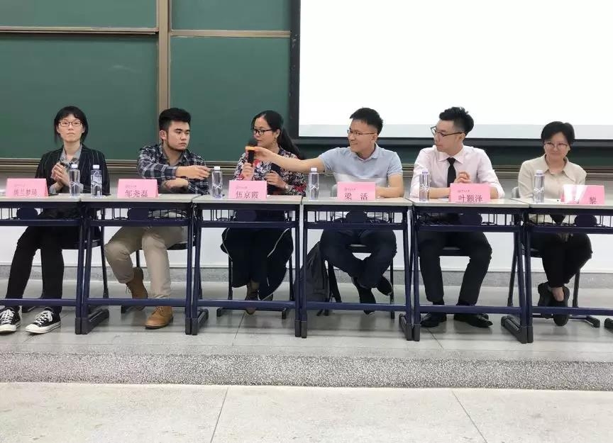 当天晚上,以叶颢泽的主题分享《奇葩说》开场,职业发展经验分享会揭开帷幕。叶颢泽学长分享了他的大学生活、学习经验与求职路,从数物法三科全挂到最后进入年级前15的逆袭之路,总结出了“好学、吃苦、耐得住寂寞“三大法宝。