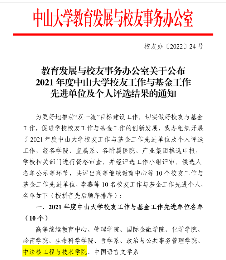 喜讯 | 我院荣获“中山大学校友工作与基金工作先进单位”表彰