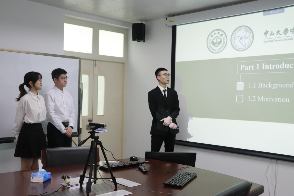 论文答辩工作采用线上线下同步的方式进行。中法双方专家组成两个答辩委员会,中方有康明亮、周文忠、熊孝根、陈胜利老师,法方有法国原子能与可替代能源委员会的Bertrand Mercier教授(工程师阶段教学负责人)、南特高等矿业学院的Guillaume Batigne教授、格勒诺布尔国立综合理工学院的Adrien Bidaud教授。
