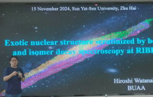2024年11月15日,北京航空航天大学的Hiroshi Watanabe教授主讲“若海讲坛”第54讲《在放射性束工厂衰变谱学终端探究奇特原子核结构信息》。