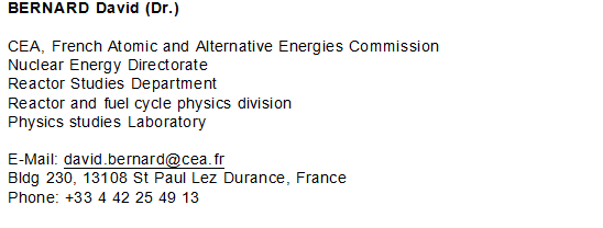 Contribution (work package leader) to international working parties (European project ANDES/WP 3 nuclear data validation for Fast Breeder Reactors, OCDE, >5 times as expert at IAEA) Academic activities: lectures (approx. 50h) at French University, internships supervisor, Madrid (occasionally) and Sun-Yat Sen University (China)